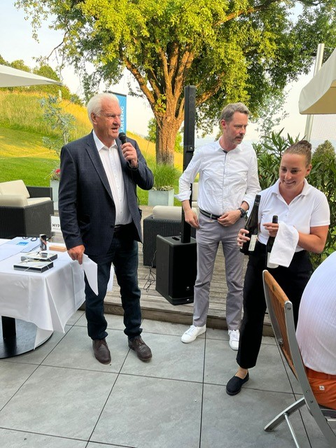 Nach einer Welcome-Back Erfrischung begrüßte Club-Präsident Werner Karg gegen 15:30 Uhr Generali CEO Arno Schuchter und Frau Nicole Wolf-Schuchter sowie alle Spieler zum gemeinsamen Essen auf der schönen Club-Terrasse. Er bedankte sich bei Arno Schuchter und seiner charmanten Frau Nicole für das schöne Turnier und die jahrelange vertrauensvolle Zusammenarbeit. Auch im Jahr 2025 wird es den Generali Cup wieder geben. Beim geselligen Zusammensein mit musikalischer Unterhaltung gab es noch viele angeregte Gespräche bis in die frühen Abendstunden. Club-Gastronom Paulo Lopes und sein fleissiges Team sorgten wie gewohnt für ein hervorragendes Essen und perfekten Service.